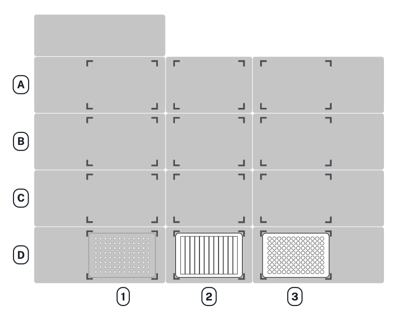 As an example here’s how we would load our labware in slots D1, D2 and D3 of a Flex.