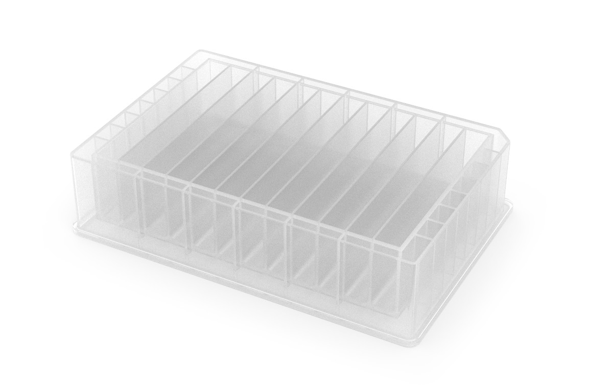 - Measure out equal amount of solution from the reservoir into wells in the first column of the plate